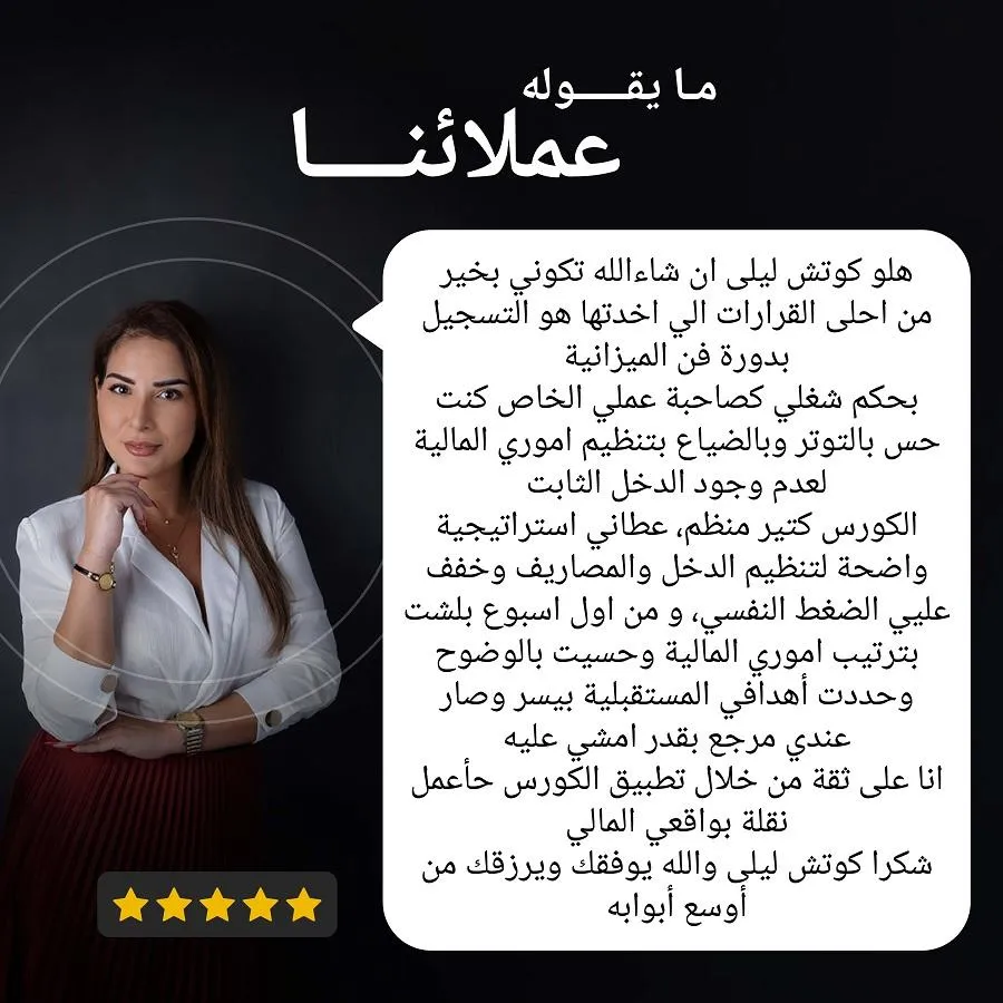مع ليلى، ستتعلمين خطوات مدروسة واستراتيجيات فعّالة تمنحك أدوات لتحقيق استقلال مالي واقعي ومستدام